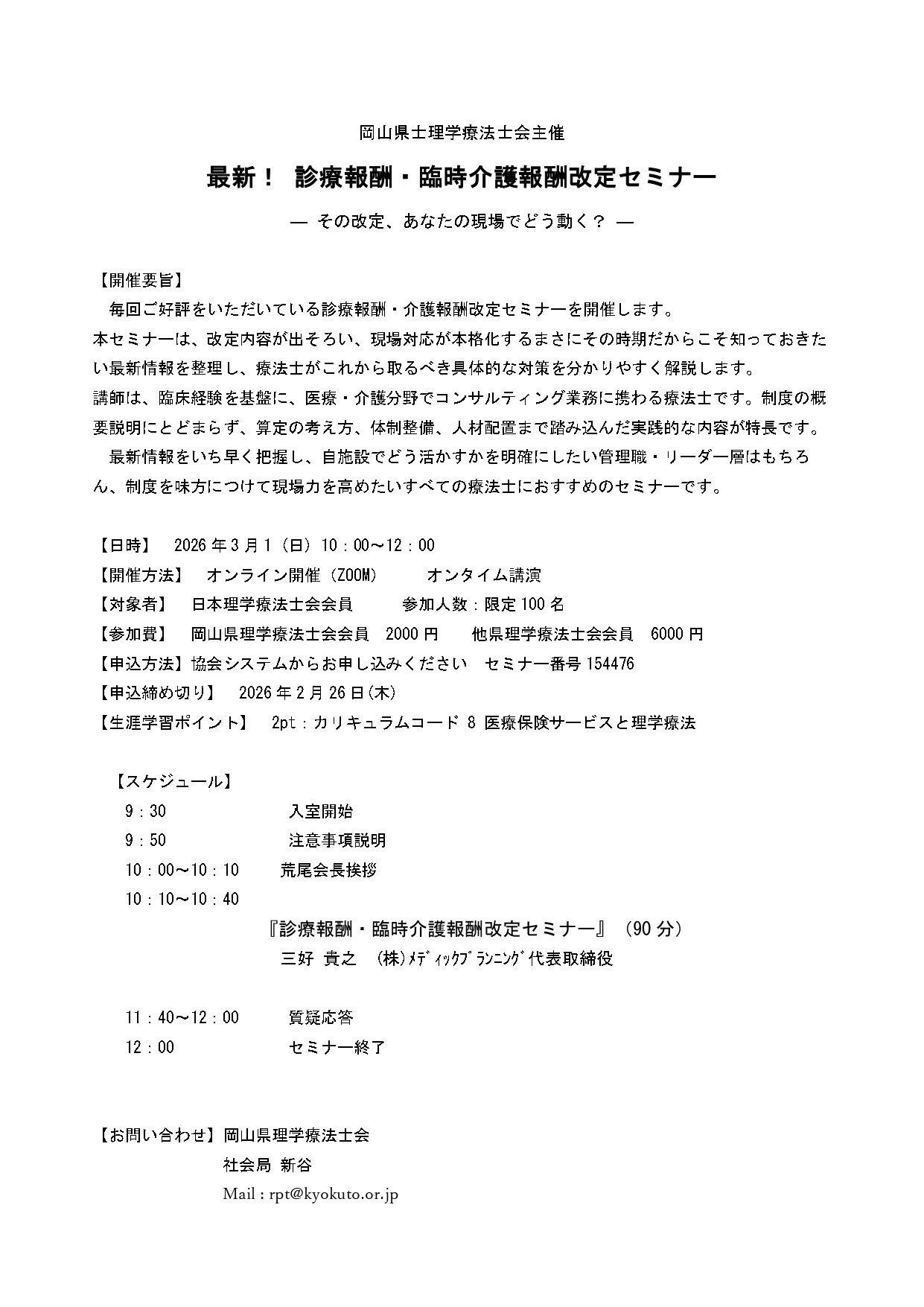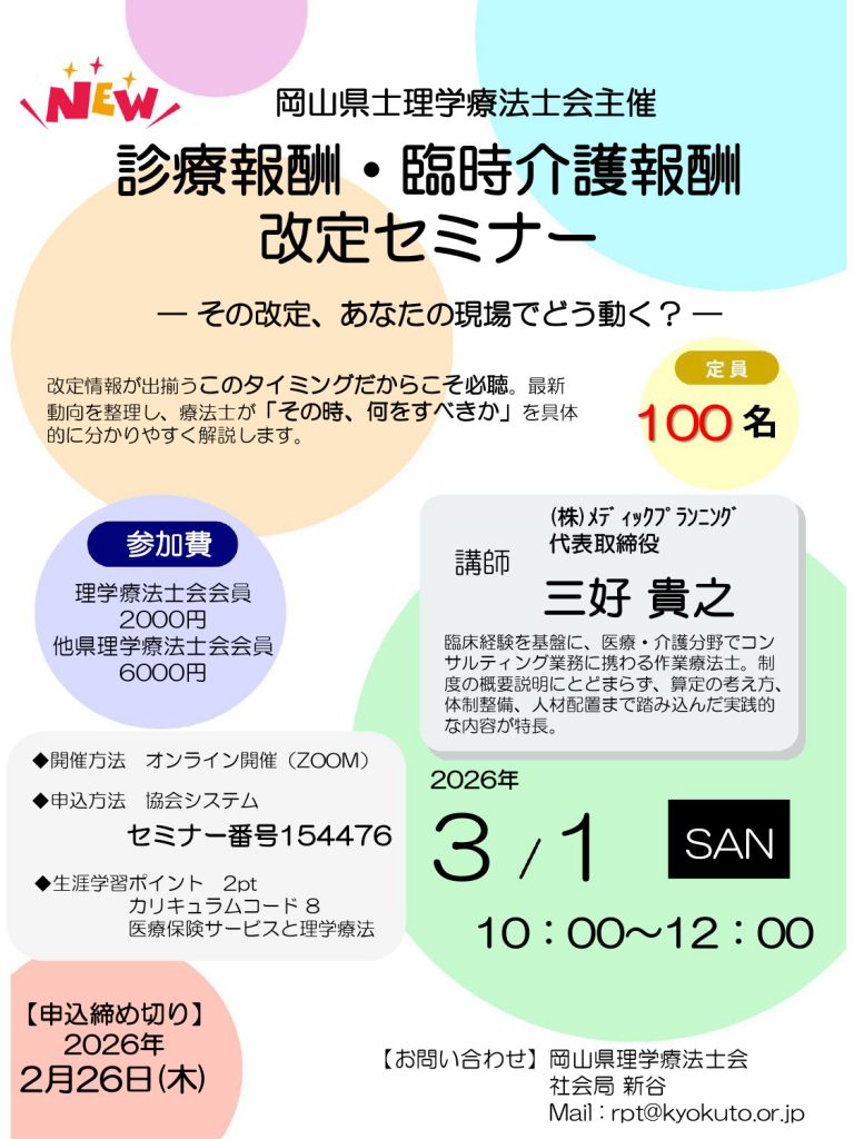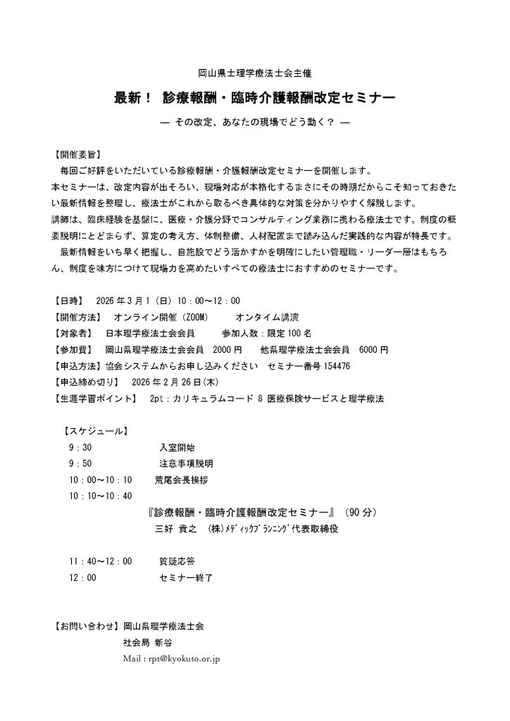 学会・研修会 (協会・県士会)診療報酬・臨時介護報酬改定セミナー