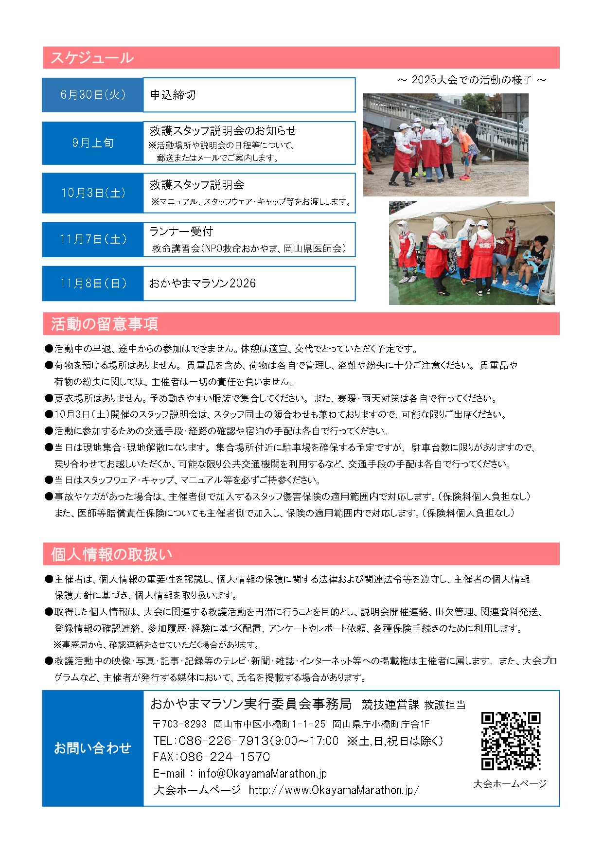 活動時間:6:45~16:30(最大5時間程度) 時間は、救護所により異なります。