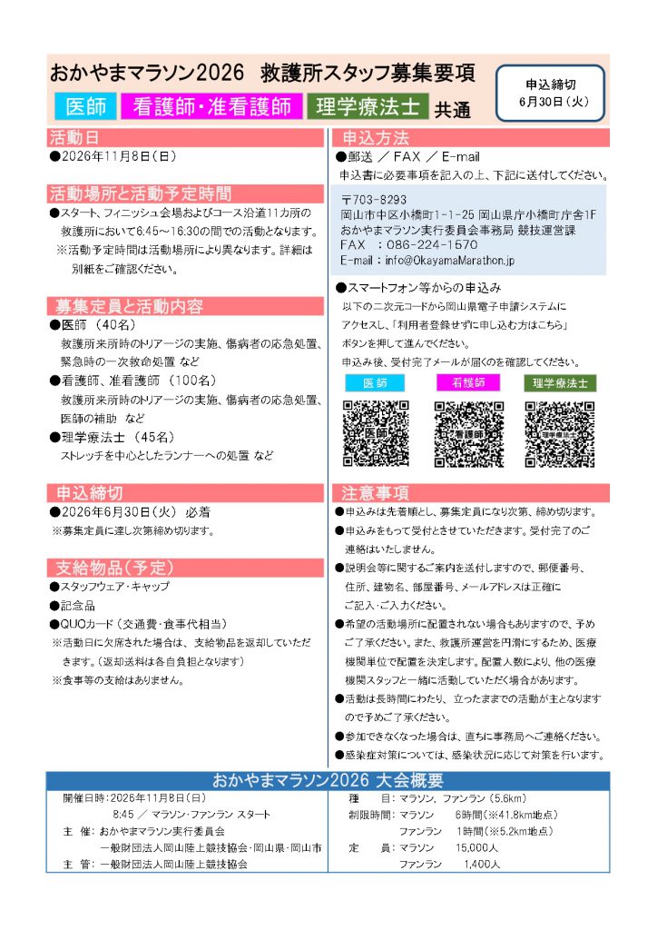 その他おかやまマラソン2026 理学療法士救護ボランティア募集
